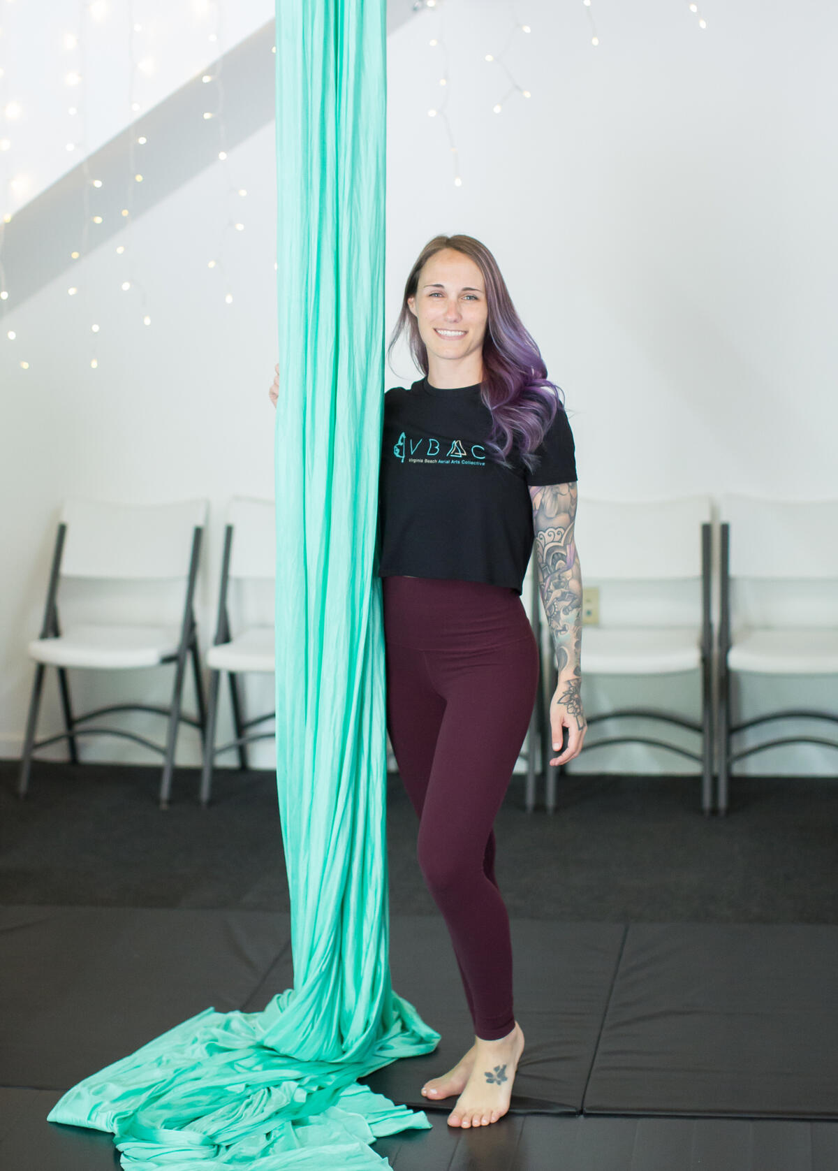 Yoga & Aerial Yoga instructorHeather was first exposed to yoga during her college years, then deepened her practice following the birth of her daughter in 2013. Two years later (just shy of her 35 th birthday) she stumbled upon the aerial arts and took a silks class with Kelsey; she has been flying ever since. Heather has taken classes and workshops throughout the Hampton Roads area and along the East Coast, specializing in silks and exploring lyra and trapeze. After relying heavily on her yoga practice during the pandemic, she became a Registered Yoga Teacher (RYT-200) through Yoga Alliance, specializing in vinyasa but eager to return to her aerial roots. Aerial yoga provides her with the opportunity to marry two of her greatest passions.