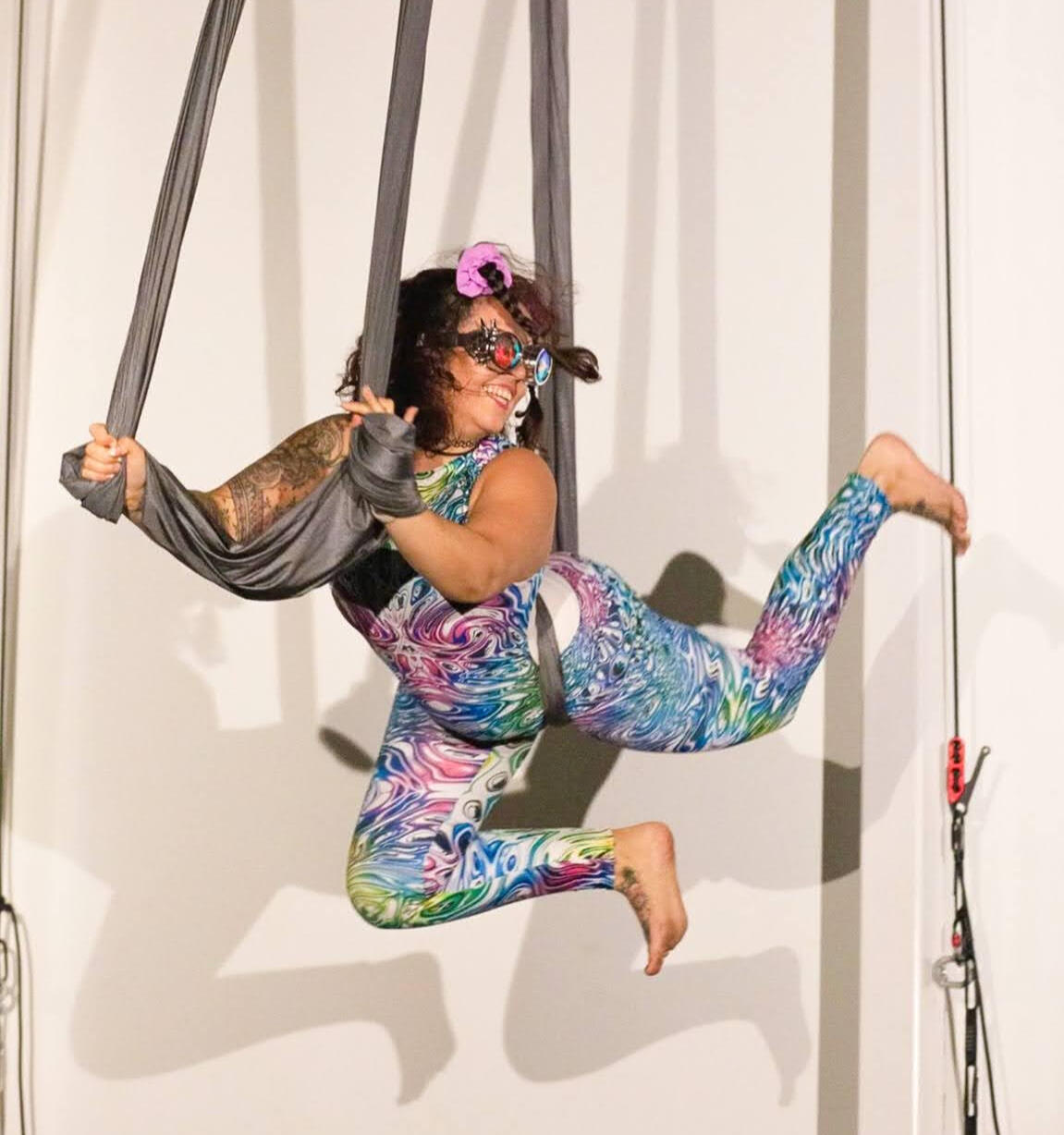 This workshop uses many exercises and techniques learned over my 30 years of dance experience as well as exercises learned from Italian fabric artist Claudio Vitale. Can be done on any aerial apparatus, and will use across the floor space for some exercises.Prerequisites: Openness to try improvised movement (on the ground or in the air), comfort getting on and off their apparatus of choice without assistance, basic aerial skills and shapes, comfort being in the air for more than 30 seconds at a time.